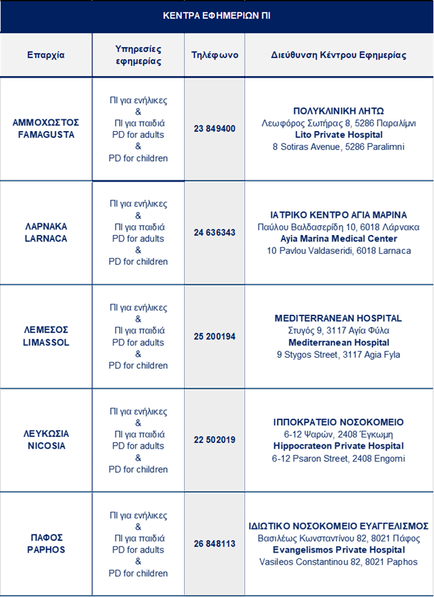 Σημειώνεται ότι, τα πιο πάνω στοιχεία επικοινωνίας των Υπηρεσιών Εφημερίας ΠΙ, θα προσαρμόζονται ανά τακτά χρονικά διαστήματα και θα αναρτώνται στην ιστοσελίδα του ΓεΣΥ www.gesy.org.cy καθώς και στους επίσημους λογαριασμούς του ΟΑΥ στα μέσα κοινωνικής δικτύωσης.
