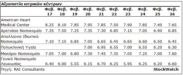 Η βαθμολογία που εξασφάλισαν συνολικά τα έξι ιατρικά κέντρα διαμορφώθηκε στο 6,91 το 2026, αισθητά βελτιωμένη από το ιστορικό χαμηλό του 6,70 το 2025, αλλά ελαφρώς μειωμένη από το 6,93 που συγκέντρωσαν το Φεβρουάριο του 2024 και το 6,95 τον Φεβρουάριο του 2023.